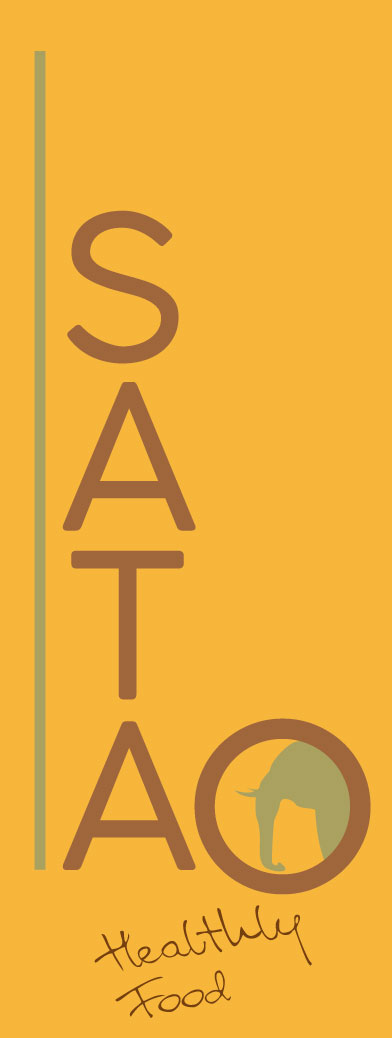 Diseño de logotipo para restaurante con fuerte carácter africano. Logo principal, adaptación cuadrada y banderola lateral.